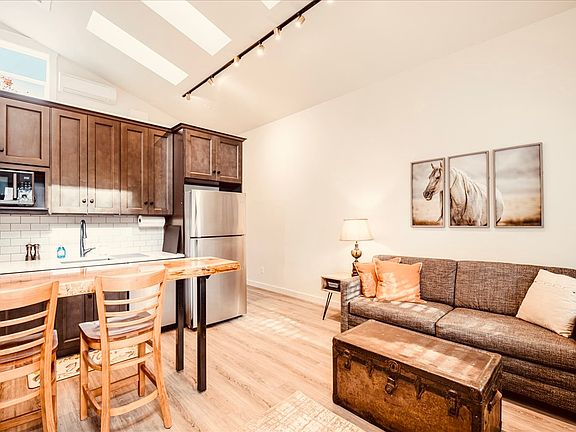 The bathroom boast a rain shower-head and in-unit laundry. Winter or summer stay comfortable with a ductless mini-split for heat and AC. Outside, you'll find a charming fenced patio with a table and grill. Perfect for relaxation or entertaining!