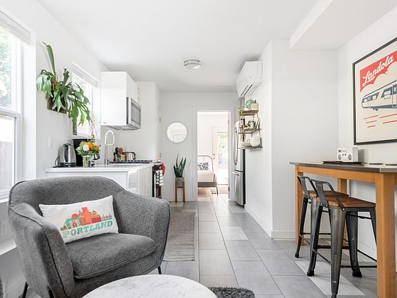 Step into a private oasis in this exclusive flat. This fully furnished guest unit features its own separate entrance, neutral grays with rustic wood accents, chic furnishings, and a backyard garden patio with a dining space. Located in the Cathedral Park neighborhood close to the St Johns Bridge, Cathedral Park, and the historic St Johns neighborhood! Take advantage of the modern kitchen with a gas stove fully stocked with a coffee maker, dishes, pots, pans, etc. There is a secluded backyard patio. Get a good nights sleep on the Queen size Caspar mattress and get your laundry done with the stacked washer/dryer. Binge-watch your favorite TV shows on the smart flat-screen TV in the bedroom with Roku streaming, Netflix, and Amazon Prime Video stream services. Stay cozy in the Fall/Winter with the radiant floor heating and cool in the summer with AC. This is the lower apartment in a two-unit building. Rent Includes all utilities: WiFi high-speed internet, gas, electric, water, garbage and recycling, Smart TV + streaming services)Parking: There is no designated parking spot, but there is always plenty of street parking right in front of the house.