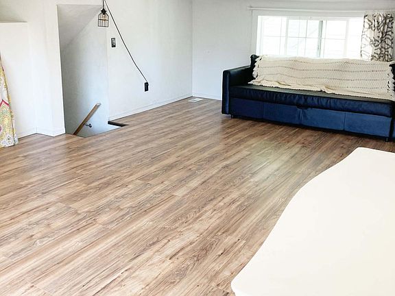 Large open living room with hardwood floors
