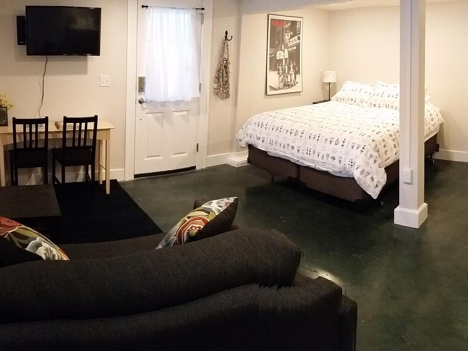 Disability notes: Must walk down a flight of stairs to get to front door of studio, front door is standard width only.