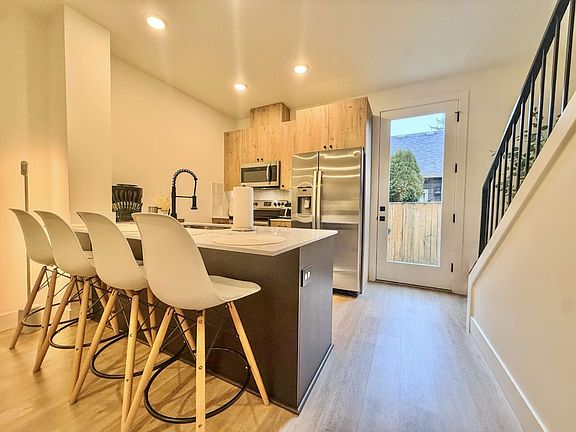 Stunning new construction townhome in a prime location near parks, shops, dining, and transit! This light-filled, open-concept home features 2 bedrooms, 2.5 baths, soaring ceilings, and stylish high-end finishes throughout. The custom kitchen shines with slab countertops, designer tile, and stainless steel appliances, while the cozy electric fireplace and large windows create a warm, modern feel. Sliding doors open to a private, fenced backyard. Fully furnished and move-in ready with in-unit washer and dryer, WiFi, and all kitchen essentials, this home offers the perfect blend of comfort, convenience, and contemporary living.
