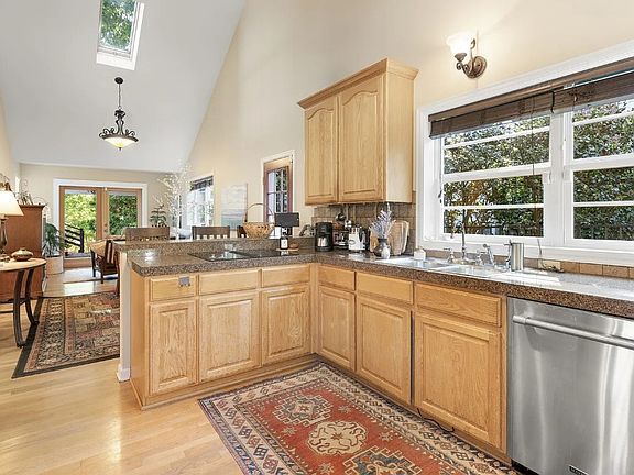 Private and spacious 2 bedroom, 1 bathroom duplex apartment in quiet Multnomah Village neighborhood. Abundant windows and sky lights let in natural light, Beautiful hardwood and bamboo floors throughout. Living, dining, and kitchen are on the main floor, which opens to an outdoor, covered living space. Master bedroom/bathroom and a spare bedroom are on the second floor with a stunning panaramic view of Mt. Hood. Laundry and storage space are in the basement. Conveniently located on two bus lines, and a short commute from downtown Portland, Beaverton, Tigard, and Lake Oswego. Within walking distance to Multnomah Village and Woods Park.