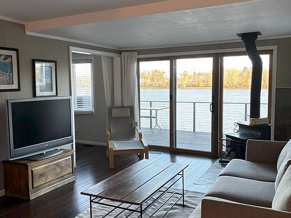 Great home surrounded by nature, on the river and next to a park. The Willamette Greenway trail runs right in front of the house, so it's a perfect spot for an active lifestyle. The neighborhood is full of amenities including a local high end grocery market, just a block away. The house has a nice open layout with views from almost every room in the house, and has been freshly painted throughout. Fully equipped kitchen with gas stove and dishwasher. Newly remodeled bathroom with updated sink, counters and vanity plus a large tiled shower. Hardwood floors throughout the bedroom, office and great room. Large deck overlooking the river, complete with a BBQ and patio table. There's even a view of the volcano Mount Saint Helens from the back of the house and the deck on clear days.