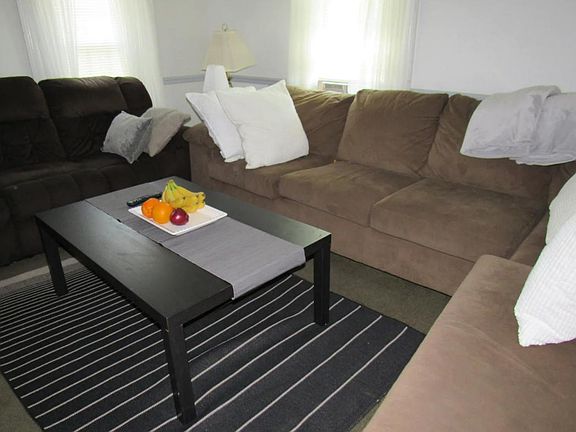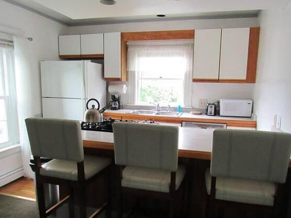 The rent is seasonal, and the listed rent is for the Summer months which is the peak season. Short or long term lease. Including utilities can be arranged. Please check rents/rates for your time period. A large, 3 bedroom apt. on 2 levels in a nice house in an excellent, upscale neighborhood within walking distance to downtown Portsmouth, N. H. The unit is thoroughly cleaned for your enjoyment. New England charm outside, modern inside. Open-plan main floor, 2 full baths: one on each floor, and the spacious top floor Master Suite is like a separate apartment on its own. Ample free parking on the driveway, dedicated washer/dryer for the unit, a porch and a yard. Nice, convenient, spacious and beautiful We wanted this place to be a very special place that you would love, and want to return to again and again. Pleasant-and-pretty walk to downtown Portsmouth in an upscale beautiful-and-quiet residential neighborhood. The property is very close to almost everything that the charming-and-fun filled Portsmouth and the Seacoast New Hampshire have to offer including all categories of shopping, restaurants/eateries/bars, cafes, entertainment, the gyms/athletic centers, the museums, the beautiful Portsmouth Public Library, the beaches, the lakes, the mountains ( the White Mountains) and to all the major routes including the I-95, Routes 1, 1 Bypass, 33, route 16, route 4, route 101 and more. The main floor has a very spacious-and-airy open concept Living/dining/kitchen as well as 2 bedrooms and a full bath. The top floor is a beautiful-and-spacious Master Bedroom Suite that occupies the entire floor, and has a full bath and a walk-in closet. The top floor Master Bedroom Suite is almost like an independent apartment on its own that occupies the entire top floor of the house with windows on all 4 sides. There are cathedral ceilings, a large full bath and a walk-in closet. There is also a small fridge in this Master Bedroom Suite, and once you shut the door at the bottom of the stairs, you will have your privacy and independence from the rest of the unit which makes this floor almost like an apartment onto its self. This floor also gets a lot of sun and breeze from all 4 sides This suite is a very large space, and it has its own seating/living area, a new smart T.V., a working area with a desk and a chair as well as the bed area with very comfortable Queen size bed that has a very comfortable high-end mattress. The large full bath and a walk-in closet adds to the independence and privacy from the lower, main floor. The lower/main floor has a big open concept Living/dining/kitchen area as well as 2 lovely bedrooms. The living Room area has lots of seating area with new, large smart Fire TV with all kinds of apps as well as regular cable, and also allows people to play hundreds of games. The second bedroom is generously sized, and has an elegant queen size bedroom set complete with a chest of drawers and 2 night tables as well as a work area that has a desk and a chair. It also has a deep closet with lots of storage space, and it is well lit with lots of sun coming through the windows. The third/small bedroom has a lovely full size bed, a small closet and very pretty windows which bring in lots of sun. So, there are 2 full baths in this apartment: one on each floor, ample free parking on the driveway as well as free street parking. There also is some storage space in the basement as well as a full size washer/dryer set dedicated to this unit, and there is a yard and a New England style porch. There are cable hookups and internet/wifi capabilities throughout the apartment. There is a Breakfast Bar in the kitchen/dining area with 3 counter height chairs, a high-end GE Profile self-cleaning gas range/oven as well as a dishwasher, a microwave, a toaster, a Keurig combo coffee maker with both the individual cup option as well as a carafe option and other kitchen essentials in the kitchen. There also is a beautiful 6-seater dining set that is expandable to seat more than 6 people when necessary. Living essentials including the kitchen essentials, bathroom essentials, linens including all the towels and bed linens, starter laundry detergent, a blow dryer, an iron, ironing boards, beach towels, etc. are provided. Guests can start living fairly normally right away. The house gets lots of sun and breeze from all 4 sides. The top floor Master Bedroom Suite is a very pleasant space to sleep in with the breeze coming through the windows. And its large, beautiful bathroom with a full size tub and shower has lots of storage, and the walk-in closet is very nice to have. But the privacy and the independence that this suite offers from the rest of the unit below is something many of our guests valued highly. I find this space to be very peaceful, quiet and serene: a perfect place to recharge, think, work or just chill Living in a nice, breezy house with a yard and a New England style porch seems much nicer than living in a big building or in an apartment/condo complex especially these days, and the location seems to be so convenient and the neighborhood very nice and lovely. (Once again, All linens including the sheets and the towels, kitchen essentials, blow dryers, an iron, ironing boards, etc. are provided for immediate and fairly normal living right away) Please view the pictures, and contact us. The listed rent is before utilities which is mostly natural gas which seems to be the cheapest. Including utilities can be arranged. Please inquire. Thank you. For shorter term guests/tenants, there will be a one time cleaning fee of: $189. Pet fee is: $3.95 per night per pet. Extra guest charge after 3. This is a fully furnished apartment in a house. Flexible lease length: short or long term. Utilities can be included or excluded depending on the renter's preference. It is a very spacious, elegant and nice place in a lovely neighborhood within walking distance to downtown Portsmouth. Rents vary depending on the season. Pleas