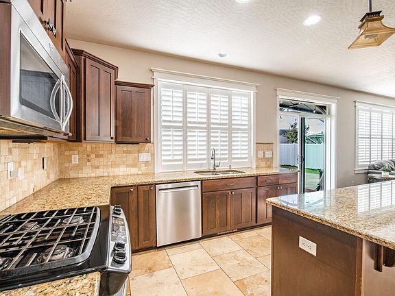 Gorgeous and spacious fully furnished home. All solid surface flooring. Large fenced yard, loft, 4 bedrooms upstairs, 2.5 baths, views of the mountains, open concept, granite, tile, travertine, gas fireplace, wine room and more. There is also an office with French doors downstairs. Custom plantation shutters have been installed in the downstairs. The backyard has a garden shed, raised planters and in ground automatic sprinklers in both the front and backyard. Easy access to Spokane and Coeur d'Alene. EV charger, covered patio, zoned heating. Leather couches, new linens and more. No neighbors to look at across the street. Please text for more photos.. text for more pictures.