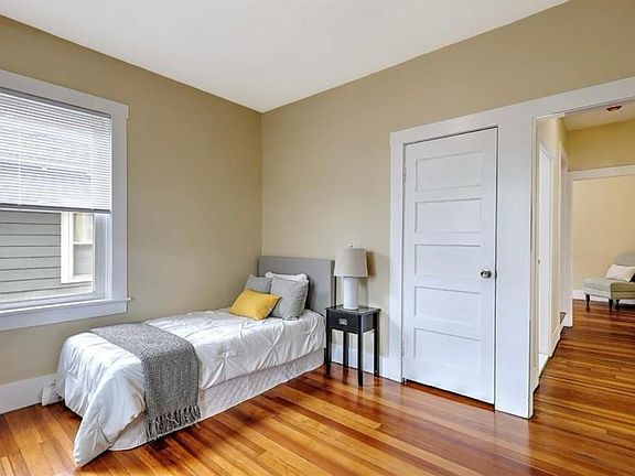 One bedroom is available on the main level of a spacious 4-bedroom, 2-floor house. The upstairs features two bedroom with a shared half bath, while the main level includes two bedrooms and a shared full bath. Common spaces include a full kitchen, enclosed front porch.