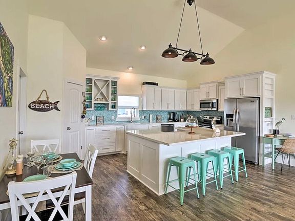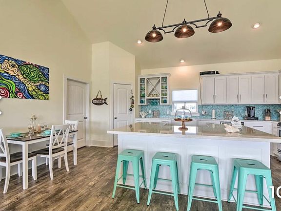 Beautiful fully furnished modern 3 bed / 2 bath beach cabin with open floor plan, designer finishes and a fully stocked kitchen. Enjoy water views from the the front deck while dining outdoors or have some drinks while cheering for your favorite sports team at our awesome tiki bar. Just a 2 minute walk to the beach to dip your toes in the water's edge or boogie board some waves. Close to Shopping and restaurants. Stay with us at La Bella Vista Crystal Beach and let the good times roll.