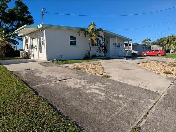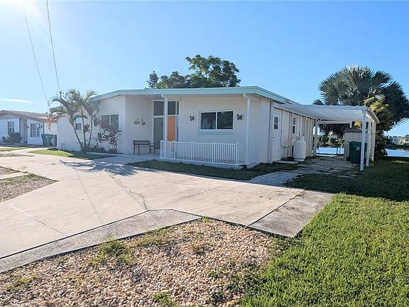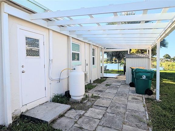 Come enjoy lake front living. Imagine your mornings with a coffee and your evenings with a drink enjoying your view of the lake. But no need to worry about flooding here. This home did not flood. This very well updated two bed room one bath home is situated in a nice quite neighborhood near all the comforts and necessities the area has. Upon entering the home you will find an open floor plan with lots of natural light. The entire home has vinyl luxury flooring for easy cleaning. The large update two tone kitchen opens upon up to the living / dining area. From the natural stone island, you can entertain your quest while utilizing all the functionality of the large kitchen. The kitchen includes a range, microwave, dishwasher and refrigerator with lots of cabinets for storage. Relax in the enclosed lanai with direct access to and view of the lake. The master bedroom has French doors that lead to the lake. Each room has a mini-split AC unit and ceiling fans to provide comfort and efficiency. On the outside you have a laundry room with washer and dryer included. An efficient tankless water heater to safe you money and provide fast hot water. The home offers a circular driveway and two additional areas to park your vehicles or toys. A pergola that can be used as sitting area, with an adjacent shed for storage. Of course, the best part of the home is the backyard with the lovely view of the lake. Furniture is optional