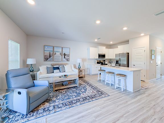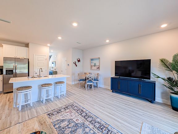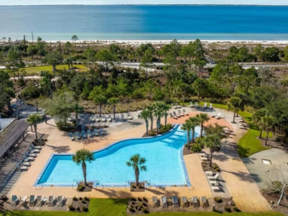 Fully furnished three bedroom 2 1/2 bath one car garage parking space for two vehicles, two minute walk to Sugar Sand beaches. Smart TV in every room, well equipped kitchen. Master Bedroom king size bed with unsweet Bedroom two bunkbeds twin over full. Bedroom three queen size bed. Two pools 50 minute drive to Panama City! 45 min drive to Tyndall AFB