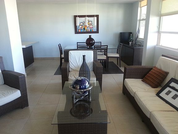 Spacious and very attractive apartment located in the prestigious and very attractive apartment complex Puerta del Mar in Aguadilla. The unit is a Sub PH so it is bigger than standard units and also is a corner .This apartment has 2 bedrooms, 2 bathrooms, living room, kitchen, laundry, large balcony and family room. This fully furnished and has air conditioning in all rooms, and family room. In this complex facilities you can enjoy beautiful gardens, two swimming pools, one infinity with spectacular ocean view and where you can enjoy the most beautiful sunsets. It also has recreational facilities, gazebo and activities room. Close to schools, shops, industries, restaurants, hotels, the famous beach of Crash Boat and much more.