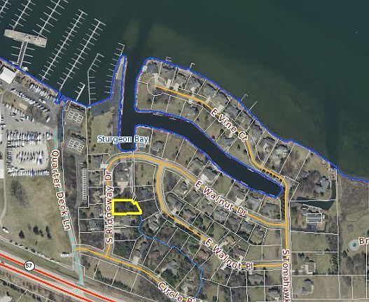 .31 acre lot for sale in Purves Lagoon neighborhood includes commons area and 38" dock 17/18 $68,000. Lot is wooded and ready to build your home or just enjoy your dock and commons area. This prime lot is on S. Ridgeway Drive, has a wooded creek along the back and easy access to the water, the city and the highway. All docks have power, water and 6" depth in most areas for sailboats and large power boats with protection from Sturgeon Bay and access to all of the Great Lakes. Excellent Homeowners Association manages the common space only $500/YR. Email for more information. Door County parcel 2814095002000.