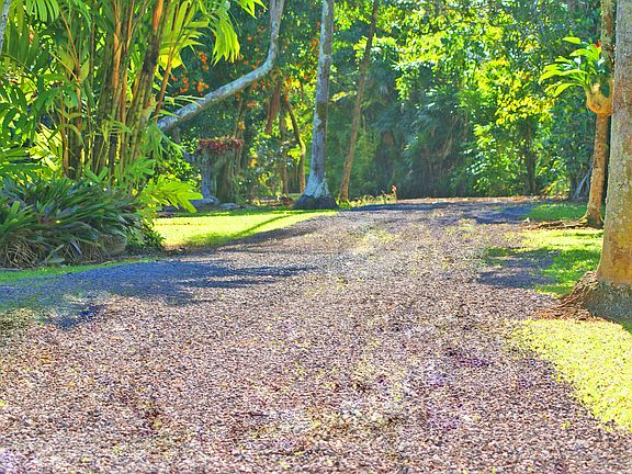 Drive to near the end of Puupilo Road, cross over an idyllic mountain stream, and on your left you will be greeted by a variety of unique palm trees as you drive down your 300' driveway to your future lot. Nice views of a neighboring grass meadow and stately palms.