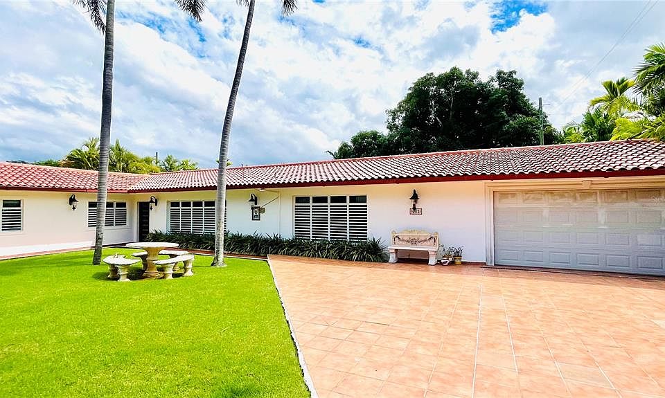 Located within the exclusive gated community of Garden Hills Sur, this single-level home was expanded and partially renovated. Two bedrooms with ensuite baths and beautiful marble floors throughout the whole house were part of the expansion and renovation. The contemporary residence sits on a flat sprawling 1,050 S/M lot. The home's interior floorplan spans approx. 3,600 S/F besides the pool area and garage. The soaring cathedral ceilings throughout the house create an elegant living room, opening up to the dining room with large doors leading to the terrace and pool. The kitchen has beige granite countertops and an informal dining area with access to the pool and outdoors. The expanded master suite consists of two adjacent rooms, a sitting or family room, 2 huge walk-in closets, the master bath and master bedroom which also opens to the pool and terrace. There are four additional bedrooms and four baths, including an oversized guest room with its own entrance, en suite bath and kitchenette, being used as another family room. Enjoy year round the best of Caribbean living at the terrace with its large swimming pool and jacuzzi, which has a bench to sit in the water next to a covered gazebo. An outdoor full bath for the pool complete this home along with a garage and a full capacity generator (20K diésel, 100 gallon storage tank). This home is within very close proximity to 2 parks with playgrounds, tennis court, jogging track, baseball and basketball courts for the enjoyment of the whole family. By appointment only for qualified buyers. Monthly HOA: $200