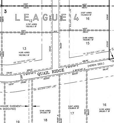 **HOLLIDAY ISD** Gorgeous north-facing lot in Quail Ridge Estates. Located at the intersection of Covey Lane and Quail Ridge Road. Ready to build your dream home on 5.047 acres, in a safe and family-friendly neighborhood. 15 minutes to downtown Wichita Falls/United Regional. City water, accessible electric. No HOA, building covenants ensure quality and style of construction. Barns and shops are permitted, mobile homes are not.