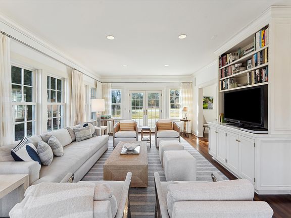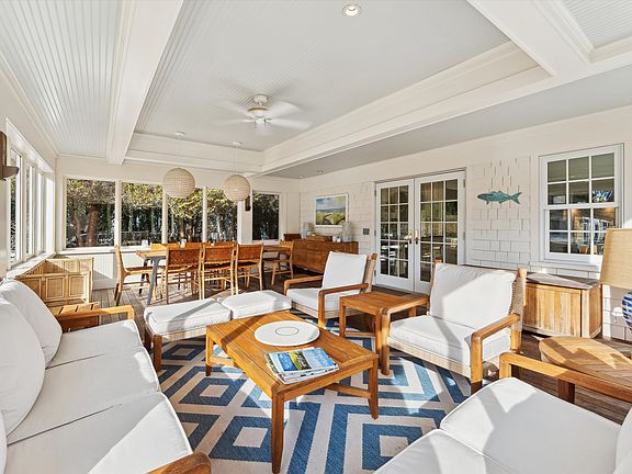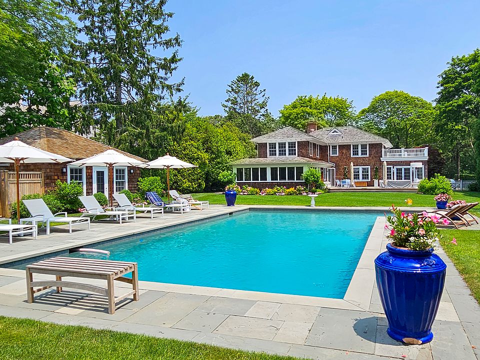 Recently renovated with quality details throughout, this classic Quogue South property is the ideal setting for summer fun. The airy first floor features multiple living/entertaining areas, including a sunny living room, formal dining room, a den, huge eat-in kitchen, and a screened porch with seating both for conversation and dining. The finished lower level has a media room with oversize television and comfortable couches. Upstairs are four bedrooms and three full baths, including the spacious primary suite with wraparound windows and views of the back yard. Outside there's a wide deck with BBQ, heated gunite saltwater pool with slate surround, and plenty of space to lounge. Close to shops and Jitney, comes with Quogue Village beach rights.