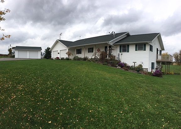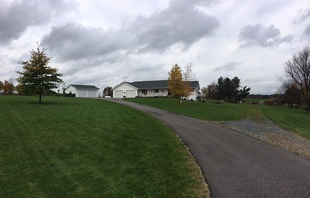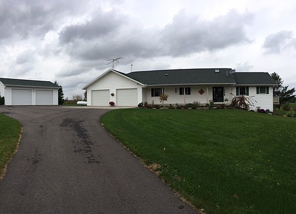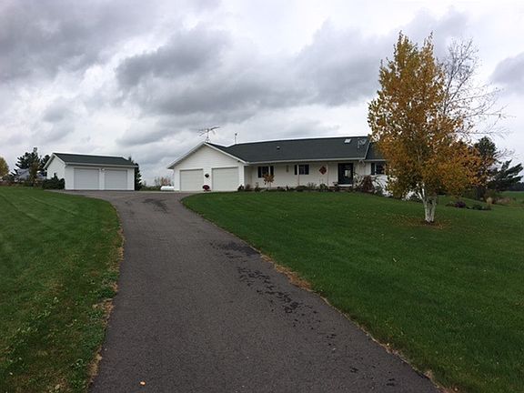 Beautiful 5 bedroom ranch home on 26 acres with a gorgeous kitchen, main floor laundry, huge master suite with walk out patio door and private deck - all on 26 country acres and a 5 car garage! Quality built home featuring in-floor heat, central vac, walk out lower level, main floor office, huge master suite with walk in closet, awesome master bath with double vanity sinks, walk in shower, garden tub and walk out patio door to catch the morning sun!Dine in chef's kitchen with large custom center island featuring lots of "toys" for the cook in the family! Living room features vaulted ceiling and large picture window overlooking the gorgeous country side and views of the wildlife that frequent the area. Laundry room is generously sized with lots of storage and closet space and ½ bath just off of the large attached garage. Walk out lower level features large family room, 4 bedrooms, in floor heat, full bath with double vanity sinks, off seasons closet and unique bonus room which is prepared for a future sauna! Storage and mechanical room also leads to a large cellar for storing the fruits of your labor! Outside, you'll fall in love with the country living space, the back field is approximately 10 acres and is great for attracting wildlife and planting crops. Raspberry patch along the east boundary will provide lots of berries for canning, freezing and making jam! All bordered by a winding creek! Garages are very nice and include a 34' deep by 28' wide 3 car garage. Just off of the attached garage is another 28' wide by 24' deep detached garage and an outdoor patio / parking space. Plenty of storage! Seller is also providing a one year home warranty for buyers peace of mind and all appliances are included.