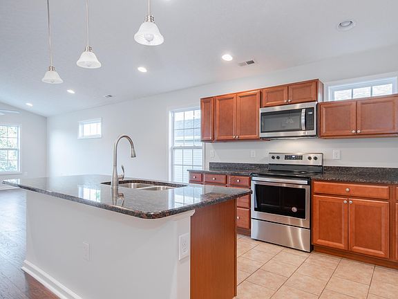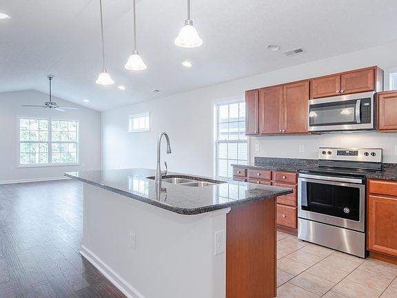 Engineered hardwood flooringKitchen with granite countertopsCeramic tile flooringVaulted ceilingCentral heat and airStainless steel appliances
