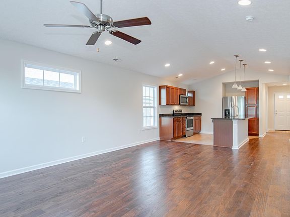 This is a lovely new open and inviting home with ranch floor plan. It has vaulted ceiling, kitchen with granite countertops, stainless steel appliances, dishwasher, microwave, refrigerator, electric stove. Engineered hardwood flooring in main areas and bedrooms; ceramic tile flooring in kitchen and bathrooms. Blinds throughout. Central heat and air. No pets or smoking, including vape. Lawn maintenance and snow removal provided. Located in Gloria Villas subdivision. Directions: From West Main Street, turn onto Rock Road, Aaliyah Lane is the 2nd street on the left, one street beyond Jeffries.