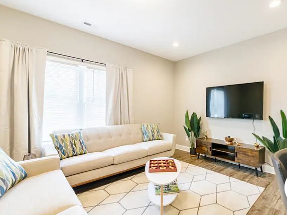 New-build 3 bedroom, 3.5 bath home is 1 mile from Radford University, and 20 mins from Virginia Tech. Each bedroom offers blackout curtains, a private ensuite, and walk-in closet. 2 bedrooms have a smart tv. Large living room also has a TV, dining area, and fully-stocked kitchen. Youll have access to on-site laundry (washer, dryer, iron, ironing board). The house is located in a safe, quiet residential area where there is plenty of parking. Queen Bedroom with Private Entrance: Has a Smart TV, walk-in closet, and private ensuite. Bedroom walks out on to a private porch with patio set for enjoying your morning coffee or winding down after a long day. Upstairs Queen Bedroom: Has a Smart TV, walk-in closet, and private ensuite. This room offers the most natural light in the mornings, and has black-out curtains for those sensitive to light and 3rd shift workers. Upstairs Twin Trundle Room: Can be set up as three twin beds (one as a trundle), with a laptop workstation; OR, this can be set up in advance as one King Sized bed with a pull-out trundle bed. If youre traveling with young children, this is probably the best space for them! Room also has blackout curtains, private ensuite and walk-in closet. We have both firm and soft pillows available for each room! We usually keep the firmer pillows on the bed, but there are always 2 extra pillows in the walk-in closet of each bedroom if you prefer something a bit softer.The dining room, living room and kitchen are open-concept. There is a breakfast bar with high-top chairs for larger groups or guests looking for a less formal dining experience. Fully-stocked kitchen features several small appliances, a dishwasher, stove, fridge and freezer as well as everything you would need to prepare a meal. If you find that were missing something that youd like to have for your next stay, please send us a message and let us know! Were always looking for ways to improve our guest experience and would love to hear your feedback.