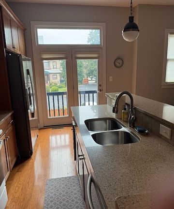 Front porchLots of natural lightPrivate bedroomsEn-suite bathsSpacious kitchenGranite countersOne car garage