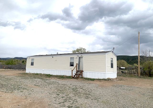 2 bed/1bath single-wide home on one acre and with beautiful views of the mountains and wide-open spaces, offers a kitchen with a gas stove cooking, a dishwasher and a pinewood pantry. Heated by forced air on natural gas, this affordable home has a washer and dryer, a large master bedroom and off-street parking