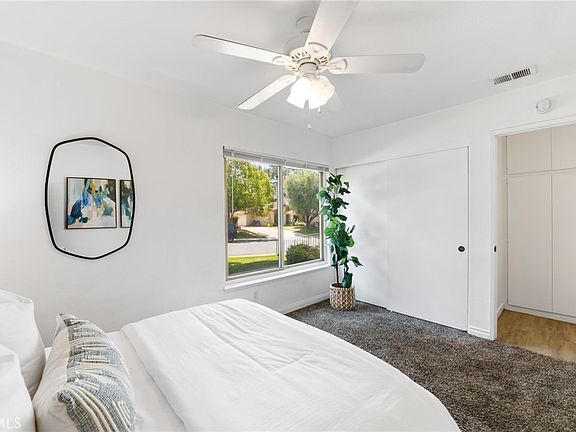 Furnished bedroom with Queen and Unfinished BR. Shared bathroom property at Ardmore Cir, Redlands CA. Offers approximately 125 square feet of bedroom space in a newly remodeled home.