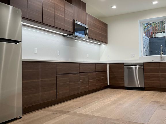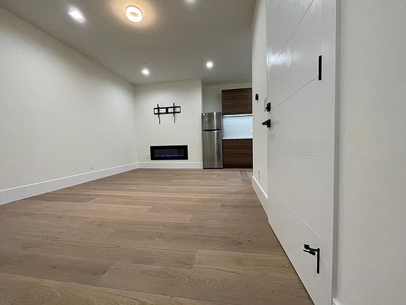 Fully private and calm basement with private entrance. Brand new, 750 sqft of 1B/1Bath unit with private living space and kitchen in a modern custom home. This modern space is equipped with 2 heat sources (fireplace and hydronic (floor) heating controlled by a Nest thermostat) for cold winters. For hot summers, this space is equipped with its separate A/C unit. Modern cabinets with led lighting and appliances in the kitchen -- microwave, cooktop, refrigerator, dishwasher, private washer/dryer. This space comes with a large carpeted bedroom and closet. Super bright unit with dimmable ceiling lights/switches all through the space. Finally, it has the beautiful white-oak hardwood in the living and kitchen.