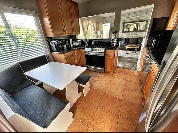 Kitchen is set up with a breakfast nook that opens up to the Enclosed private front and back patio. Furnished if needed.