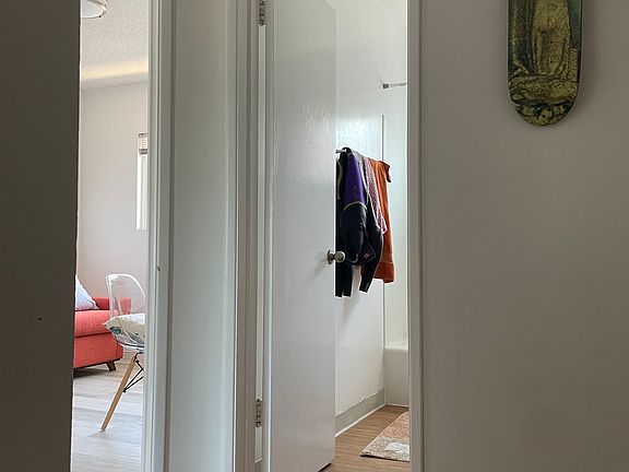 One and a half bathrooms, both shared. Street parking; street cleaning 2x/week.