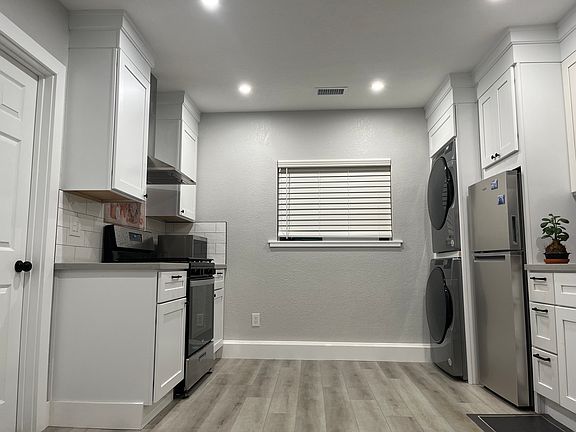 The house was renovated in 2024 and has wood floors, and the kitchen has cooking appliances, central air conditioning/heating, and washer/dryer.