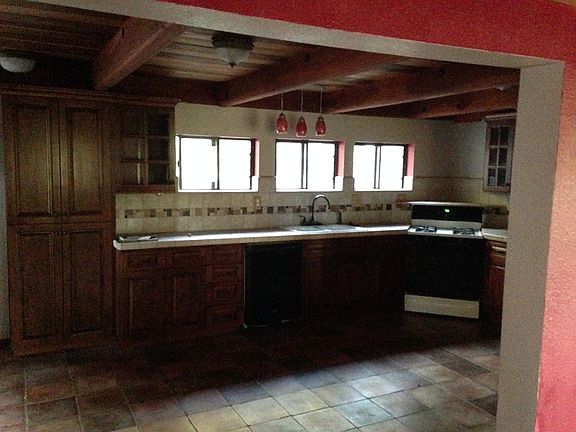 *Beautiful kitchen features custom cabinets, Spanish style tile floor, tile countertops, and appliances including a new dishwasher. Family room has wood flooring and woodstove with glass door for additional winter heating. Both bathrooms have tile floors and custom cabinets. Carpeted and newly painted bedrooms. Separate laundry room off kitchen with hook-ups.