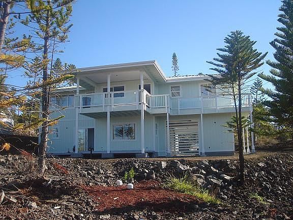 Stunning 180 degree White Water, Coastline, Ocean Views from almost every room of this massive 4bd/3bth (plus Den) custom built home in Hawaiian Ocean View Estates! Buy this house now & you can pick your appliances, floorings & kitchen countertops. Make it your own! You want UPGRADES? No shortcuts were taken in the building of this incredible Home! Over 1,500sf living area, 600sf of lanai's and near 800sf of enclosed Garages with motorized garage doors! 3/2 upstairs with laundry area inside & 1/1 and a den downstairs with a separate driveway and entry. Master Bath will have walk-in glass block & travertine shower. Tile in all bathrooms/showers. Lots of storage and closet space thru-out. Specially ordered real wood maple cabinets in kitchen with reed glass. Wrap around lanai w/ tempered glass panels. Siding of house is Smart Panel. Dual pane windows and ceiling fans thru-out home. Extra large septic tank and a 10,000 Gallon water catchment tank. Norfolk Pines and lots of mature trees on this Wide, corner lot! Located in a very Desirable area of the subdivision and in the lower 1/4 of HOVE. If you want a BRAND NEW, QUALITY BUILT HOME BY A LICENSED CONTRACTOR than THIS IS IT! A MUST SEE! Still under finishing construction phases... Call for Immediate showings, or more pictures!! Aloha Nui Loa!! Neighborhood Description H.O.V.E. is the WORLDS LARGEST SUBDIVISION!! Made up of over 11,000 one Acre Lots! Its Beautiful and a strongly growing Community! Not to mention one of the last affordable places to buy in HAWAII!!
