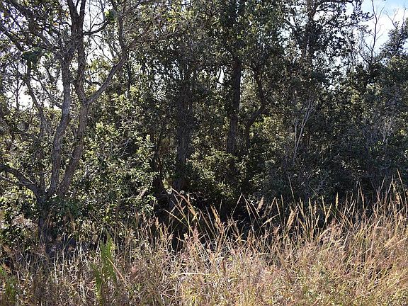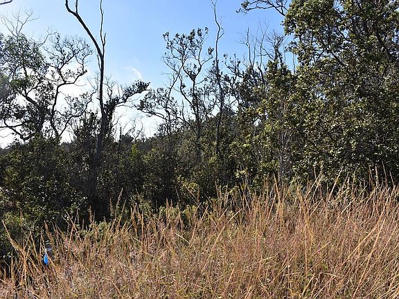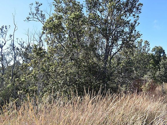 Hawaiian Ocean View Estates - one wide acre (122 ft x 356 ft) of ohia forest just above Kailua Blvd. This lot sits down from the road a bit, but may still offer some views of the ocean and sunset if one were to build up two stories. This is a great deal for someone looking to relocate to the country in still-affordable Ocean View. Priced just over tax assessed value for a quick sale! Availability of power will be investigated with Helco and updated here. No restaking at seller's expense as all stakes should be visible. Lava Zone 2, Flood Zone X.