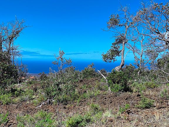 This wide one acre lot with STUNNING ocean views is located in lower part of the subdivision on a quiet street/area. Bring your building ideas to this amazing lot. Really nice location, trees, and topography. Lot measures 122x356 .Power is via SSPP. Ocean View has a road maintenance of $150 per year. Lava Zone 2. This terrific lot wont last long.