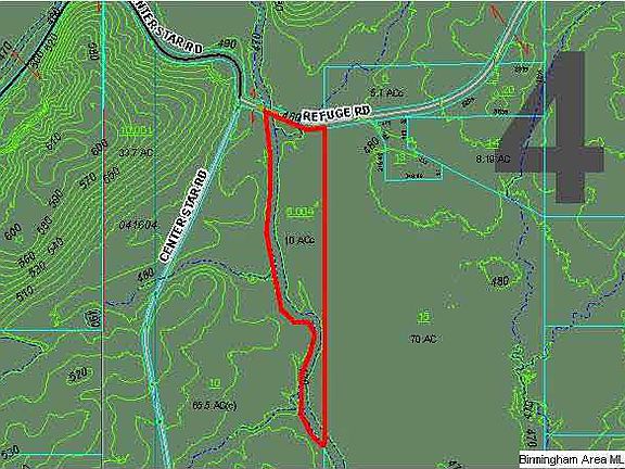 10 Acres of Flat Lands on Refuge Road in Ragland. Over 2,100 Feet on Broken Arrow Creek. Good Timber on the Property. Property does have road frontage on Refuge Road. Neighboring 72 Acres is for sale by different owner.