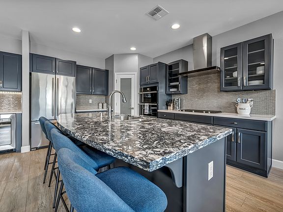 Chef's Kitchen & Built-in Bar: A beautifully upgraded kitchen with a natural stone island and high-end appliances, plus a built-in bar for entertaining or relaxing after a long day.