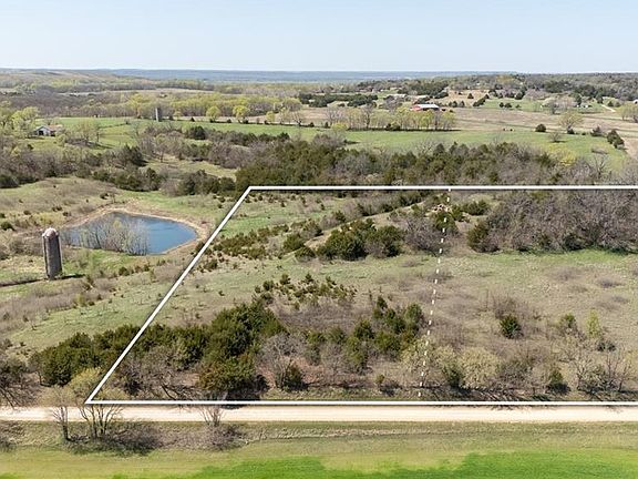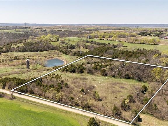 Beautiful hilltop building site just north of Lawrence! 8.24 acres total. (2 parcels sold together, both zoned buildable) Mix of trees with clearing in the middle, SE slope and pond view, and hilltop view for miles! Water meter available now. Only 1 mile of gravel, 10 minutes north of Lawrence. Build on one parcel and sell the other!