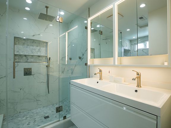 Master bedroom has two closets and a master bath. Master bath has a double vanity sink, jacuzzi tub and stand up shower.