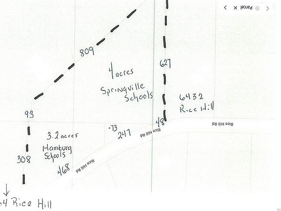 7.93 total acres on 3 adjoining parcels Two lots are in the Hamburg school system (3.75 acres) with frontage of 715 of road frontage 3rd parcel is in the Springville school system which is 4 acres and has 48 foot of road frontageBeautifully wooded land with creek meandering through and many places to build your dream home Convenient to the 219 Your own private oasis !!National Fuel stores Natural gas beneath the land and pays a dividend every 5 years, last payment was in March of 2018 NF lease agreement is attached 2021-01-20