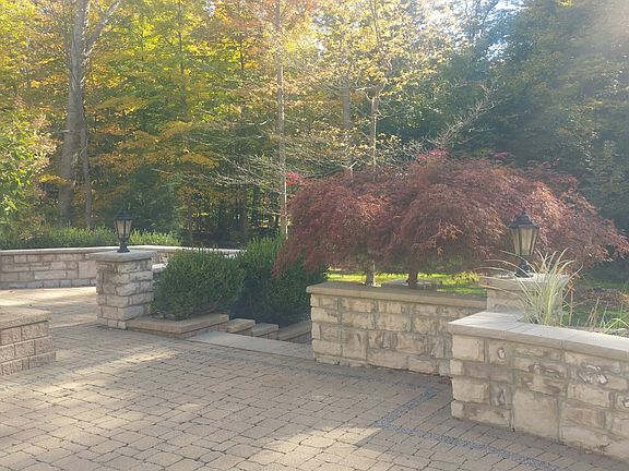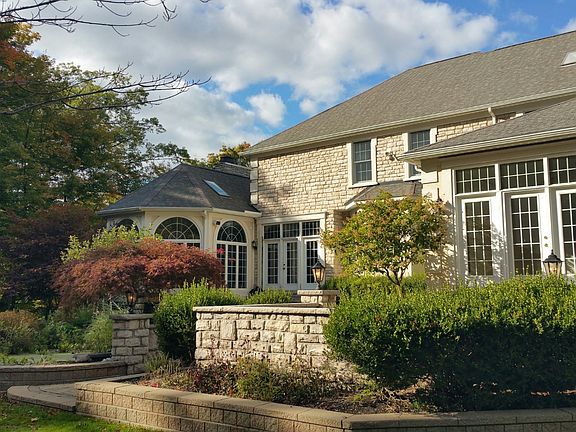 Gas fireplaceDramatic vaulted ceilingCustom classic libraryFinished basement with barPrivate wooded lotHexagon shaped sunroom