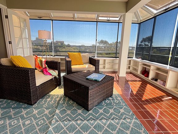Newly furnished 3 bedroom (sleep 5) and 2 full bathrooms in corner unit with an abundance of windows, stunning Bay views & gorgeous natural light. Just 1 common wall, & no windows looking out to public hall providing maximum privacy only available with end units. Extra spacious sunroom with 2 walls of glass, & built-ins and lounge area. There are panoramic SF and Bay views with amazing sunsets. Plus there is a South/West facing exterior balcony with cafe table. Features include fully furnished, new carpet, upgraded kitchen and baths. Eat in kitchen, dining area for up to 6, living room w smart tv, primary bedroom w queen bed, walk in closet and private full bath with shower/tub, office with single daybed, and other queen bedroom that share second full bath w shoer/tub. There is one parking space in the same building and elevators are available. This property is surrounded by nature, with spectacular grounds and walking paths. Enjoy Brickyard Landing's resort-like facilities: year-round outdoor heated pool & spa, gym, sauna, tennis/pickleball courts, clubhouse, community garden, and EV chargers. You can't beat the location proximity to Berkeley, Oakland, S.F. and Marin via 580; take the Richmond ferry to SF; or Amtrack or BART at nearby stations. The Bay Trail and Miller Knox Park, is just out front, and offers easy access for hiking and biking. Point Richmond is the best kept secret in the East Bay. Brickyard Landing is a sophisticated and active community with a well run HOA & beautifully maintained complex & grounds.