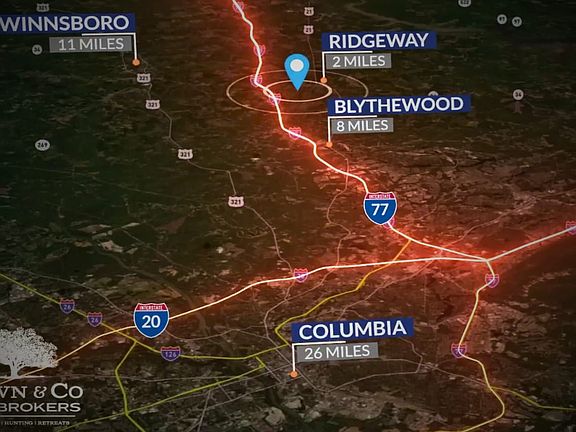 LOCATION: Centrally located between Peach Road, Highway 34, Mt. Hope Road, and S. Coleman Street in Fairfield County between the Town of Ridgeway and I-77 along the I-77 corridor between the two nearest cities of Columbia and Charlotte. Nearby small towns include: Winnsboro, Ridgeway, and Blythewood.