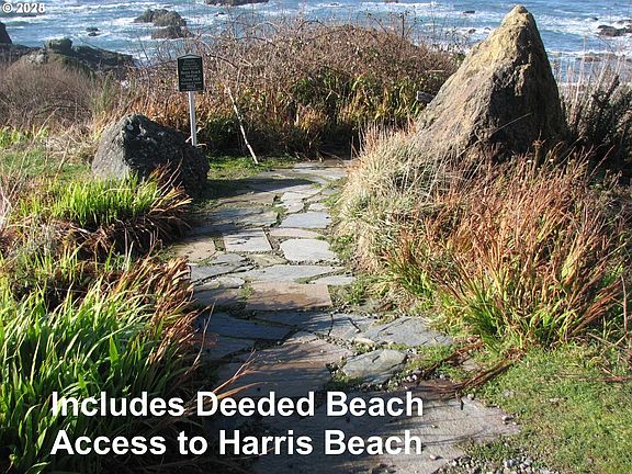 Seller may carry with 50k down at 6% interest amortized over 10 years, no prepayment penalty after year 5. Attractive level .44-acre lot in Harris Beach Estates nestled against Harris Beach State Park lands. Watershed views abound with peeks of the nearby Pacific Ocean. The subdivision's deeded beach access trail is two blocks away. Water, sewer, power, cable, and broadband internet are available adjacent to lot line. House Plans available. There are CC&Rs that pertain to architectural build style of homes in the subdivision but no HOA or fees. The lot location is extortionary beautiful and just minutes away from town and the beach.