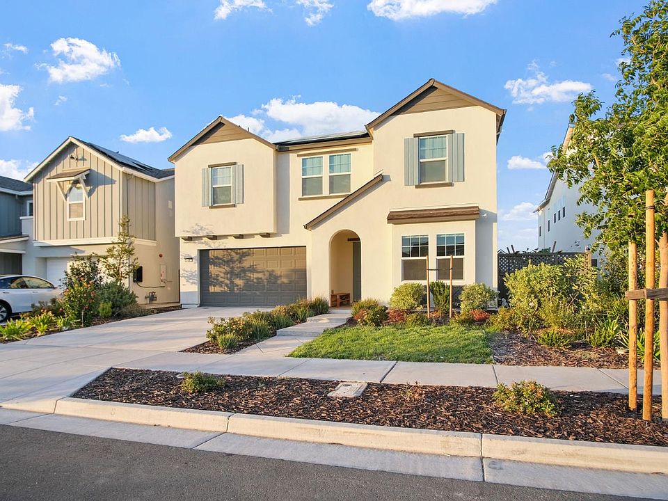 Welcome to 3081 Rio Grande, located in the Ellis community of Tracy. Just 2 years young, this beautifully maintained home still feels brand new. With 4 bedrooms and 3 full bathrooms, including a convenient downstairs bed and bath, the floor plan is ideal for modern living. The open-concept design highlights a gourmet kitchen with quartz counters, light cabinetry, stainless steel appliances, and a walk-in pantry. The kitchen flows seamlessly into the dining and family areas, creating the perfect space for everyday living and entertaining. Upstairs, you'll find two guest rooms, a full bathroom, a versatile loft, and a primary suite with a walk-in closet, soaking tub, dual sinks, and separate shower. The laundry room is also upstairs for added convenience. Energy efficiency is built in with solar panels, providing sustainability and long-term savings. The landscaped backyard with a covered California room makes the ideal setting for outdoor dining or summer evenings. Move-in ready and offering comfort, style, and functionality, this Ellis gem is the perfect place to call home.