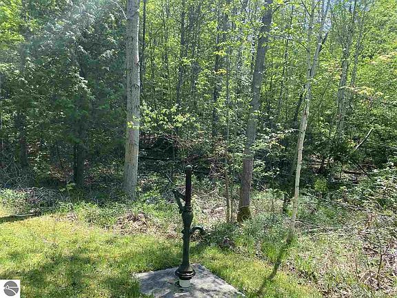 Heavily wooded rolling 9.3 acres located across from Betsie River public access and very close to Crystal Lake public access. Shared short private drive (only shared by one other owner) next to a luxury home. Note: 2nd picture shows you already have part of your driveway in due to easement granted by subject property allowing you to build from the east line of current paved drive. Your opportunity to build your dream home in an ideal location near numerous recreational activities, parks and desirable restaurants.
