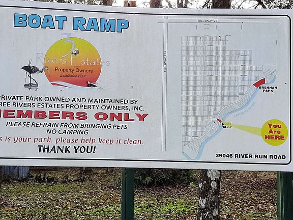 RIVER LIFE IS THE BEST! This nice wide 1 acre corner lot is located right across the street from the beautiful Santa Fe river in the heart of Spring Country! Conveniently located approximately 4 minutes from private HOA maintained boat ramp w/bathrooms, pavilion and picnic tables. Joining the Three Rivers Estates HOA for just $100 a year is voluntary & you gain access to 10 private parks and boat ramps to include the crystal clear spring fed Itchetucknee River! Enjoy the many activities, fishing, boating, kayaking, and tubing this area is known best for. North Central Florida has the largest concentration of natural springs in the world! Now is your chance to own a piece of it. So pack your bags, hook up to the boat & come on!!