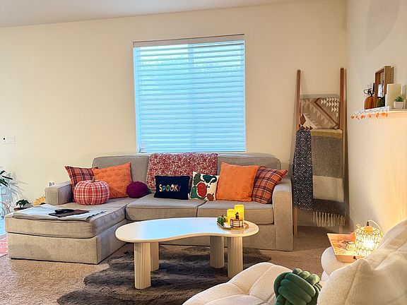 Modern interiors: open floor plan, custom blinds, and fresh finishes ready for move-in.
