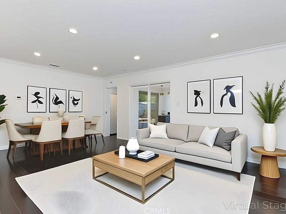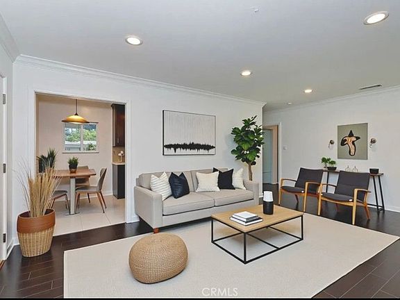 3-bedroom, 2-bathroom residence features a modern galley kitchen with granite countertops, rich wood cabinetry, and stainless-steel appliances. The bright and spacious living area boasts recessed lighting and upgraded flooring throughout.