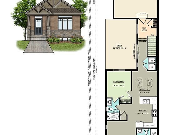 - 1,247 Sq.Ft.- 2 Bedroom, 2 Bathroom Bungalow- 9'-0" Ceilings on the Main Floor- Kitchen features an attached Island with Extended Breakfast Bar- Engineered Hardwood Flooring in Rear Breezeway, Kitchen and Living Room, and Dining Area- Tile Flooring in the Foyer, Main Bathroom, Ensuite Bathroom, Laundry Closet and Mudroom- Rear Breezeway opens to Private Courtyard Space- Primary Bedroom with Walk-In Closet and Private Ensuite Bathroom- 17'-10" x 21'-0" Attached 2 Car Garage with inside entry- Central Air Conditioning