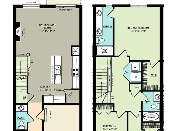 -1,673 Sq. Ft.-Covered Front Porch-3 Bedroom Two-Storey Townhome-9'-0" Ceiling Height on Main Floor, 8'-0" Ceiling Height on Second Floor-Granite or Quartz Countertops in Kitchen-Large Open Kitchen featuring a 4'x4' pantry, and an Island with an Extended Breakfast Bar-Engineered Hardwood Flooring in Living/Dining Room, and Kitchen-Tile Flooring in Foyer, Powder Room, Primary Ensuite Bathroom, Main Bathroom, and Laundry Closet-Living/Dining Room opens to a 10'-0" x 10'-0" Rear Pressure Treated Wood Deck-Primary Bedroom with Walk-In Closet and 4-Piece Ensuite Bathroom-Second Floor Laundry Closet-Attached 10'-8" x 20'-8" Garage with inside entry-Central Air Conditioning